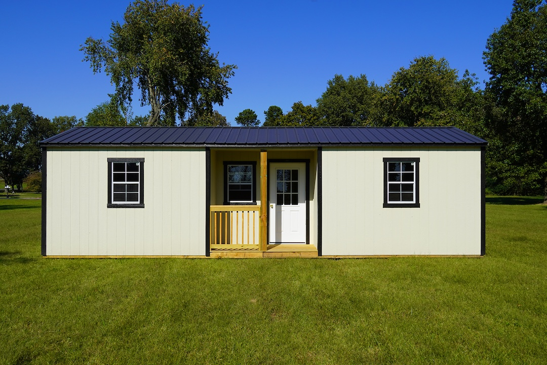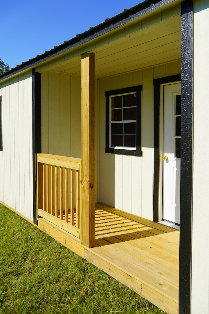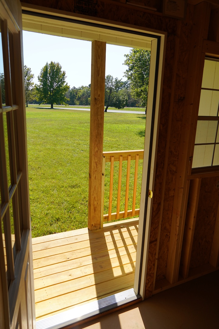 Step through the 9-lite door and enjoy the airy feel of the 92-inch interior walls beneath a low-pitched gable roof. Three 2’x3′ screened windows invite in plenty of natural light while keeping your space comfortable year-round. The 4-foot-deep by 8-foot-long porch serves as a perfect entryway or a peaceful spot to relax and take in the view.